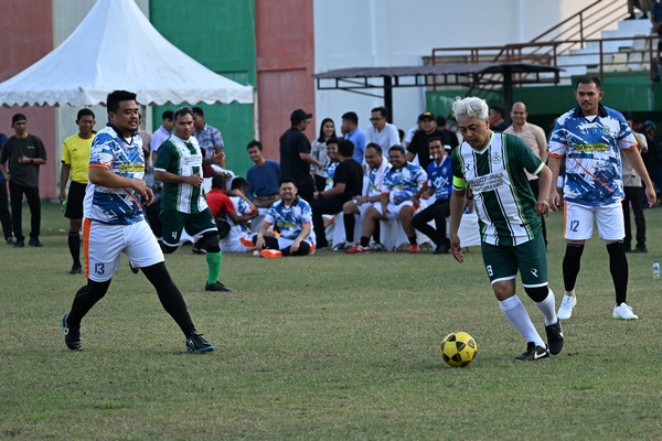 Pada kesempatan ini, Bobby juga ikut menunjukkan kebolehannya bermain di lapangan hijau. Bersama timnya yang diberi nama Tim Gubernur, melakoni laga eksebisi melawan tim wartawan.