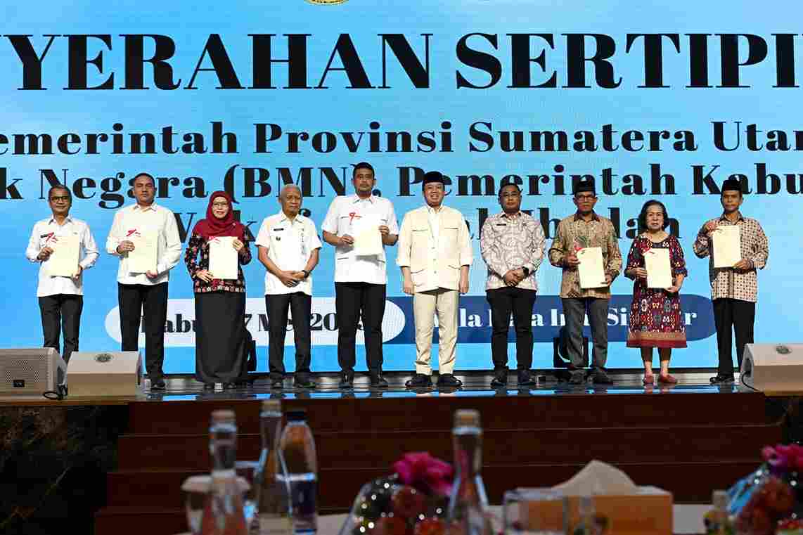 RADARMEDAN.COM, ASAHAN - Bupati Asahan Taufik Zainal Abidin, S.Sos., M.Si., mengikuti rapat koordinasi mengenai penyelesaian masalah pertanahan di Sumut bersama dengan Menteri ATR/BPN Nusron Wahid di Aula Raja Inal Siregar, Kantor Gubernur Sumatera Utara, Rabu (7/5/2025).