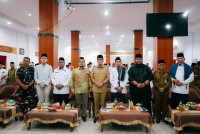 Keterangan Gambar : Pemerintah Provinsi Sumatera Utara (Sumut) melakukan pertemuan bersama dengan Relawan Gimbal Alas Malang Jawa Timur dan pihak PELNI, serta pihak terkait lainnya membahas tentang Pengiriman Bantuan dari Relawan Gimbal untuk masyarakat Aceh Tamiang di Gedung Serba Guna Sumut Jalan William Iskandar, Deliserdang, Senin (29/12/2025).