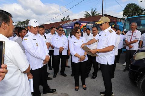Keterangan Gambar : Bupati Tapanuli Utara, Dr. Jonius Taripar Parsoran Hutabarat, S.Si., M.Si. (JTP), bersama Wakil Bupati, Dr. Deni Parlindungan Lumbantoruan, M.Eng., di Terminal Madya Tarutung pada Rabu, 12 Maret 2025.
