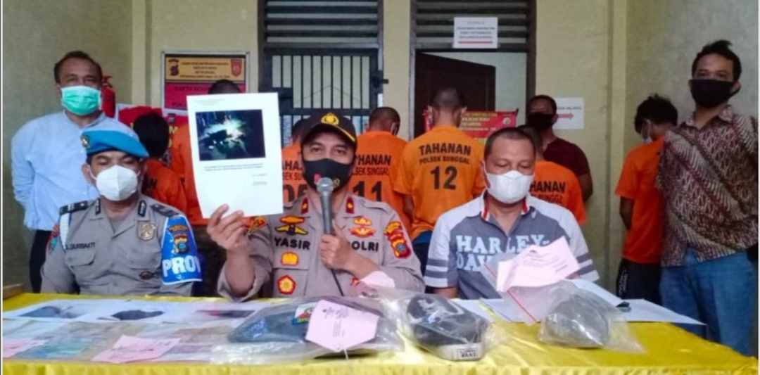 Kapolsek Sunggal, Kompol Yasir Ahmadi didampingi Kanit Reskrim AKP Budiman Simanjuntak saat menggelar konferensi pers di Mapolsek Sunggal, Jumat (29/1/2021) mengatakan, penangkapan terhadap para tersangka berdasarkan Laporan Pengaduan (LP) Ade Syahputra (37) penduduk Jalan Danau Laut Tawar, Kel. Sumber Karya Kec. Binjai Timur sesuai LP Nomor: 50/K/I/2021 tanggal 18 Januari 2021.