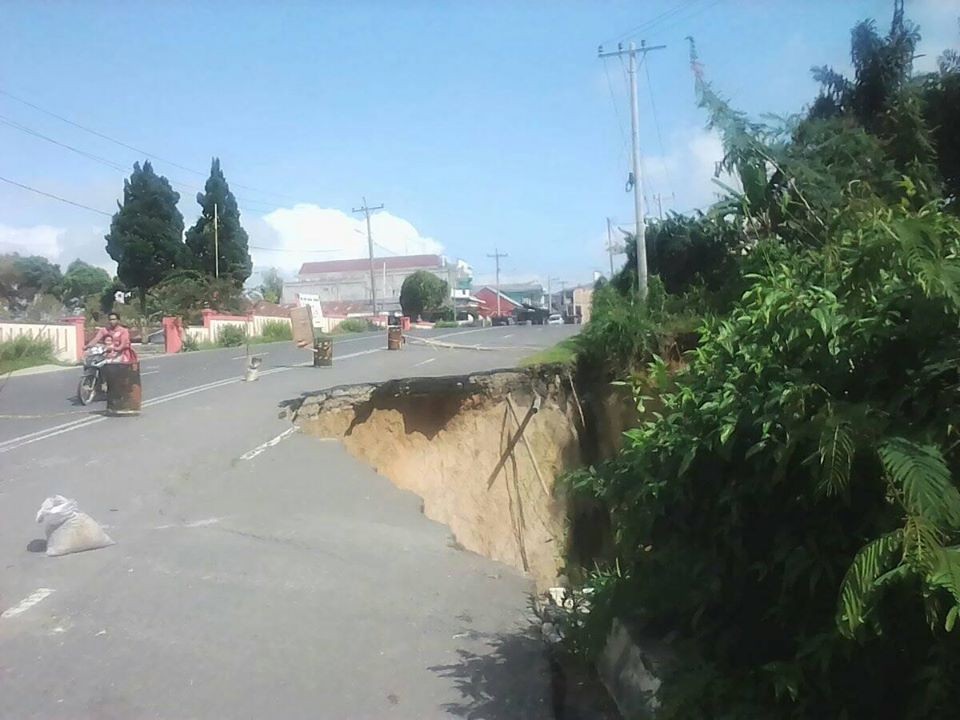 "Kita prihatin dengan kondisi itu pak, jalan sudah berbulan berlobang yang sangat berbahaya bagi pengendara, karena bagian jalan yang longsor hampir memakan setengah badan jalan," ujar Frans.