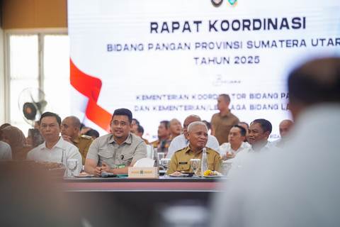 Rapat ini digelar untuk membahas sinergi Pemerintah Pusat dengan Pemerintah Daerah, khususnya Pemerintah Provinsi Sumut dalam rangka mempersiapkan target swasembada pangan yang dicanangkan Presiden RI Prabowo Subianto.