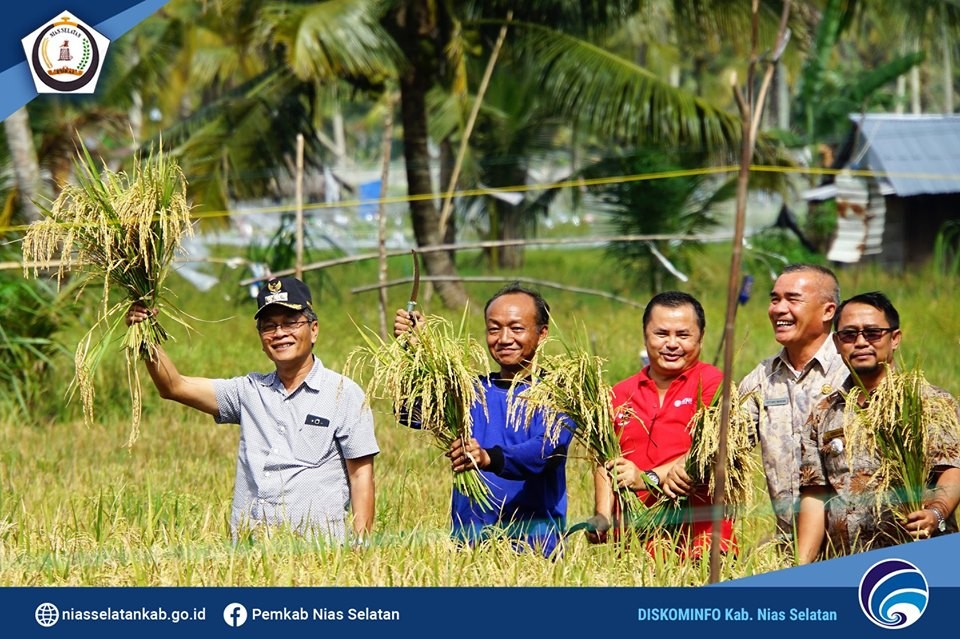 Bupati Nias Selatan Panen Padi Bersama Kelompok Tani Umbu Baru