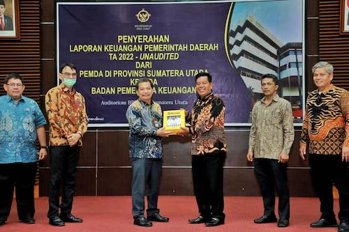 RADARMEDAN.COM - Bupati Simalungun Radiapoh Hasiholan Sinaga menyerahkan Laporan Keuangan Pemerintah Daerah (LKPD) Kabupaten Simalungun Tahun Anggaran (TA) 2022 - Unaudited dari Pemda Provinsi Sumatera Utara kepada Badan Pemeriksaan Keuangan (BPK) RI Perwakilan Sumatera Utara (Sumut).