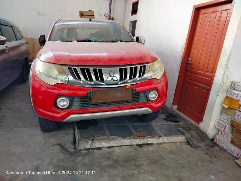Keterangan Gambar : Double Cabin plat merah BB 8019 B milik dinas Pemberdayaan Masyarakat Desa (PMD) Tapanuli Utara teronggok dan berkarat di sebuah bengkel di Tarutung. Senin, 21/10/2024 (Ist)
