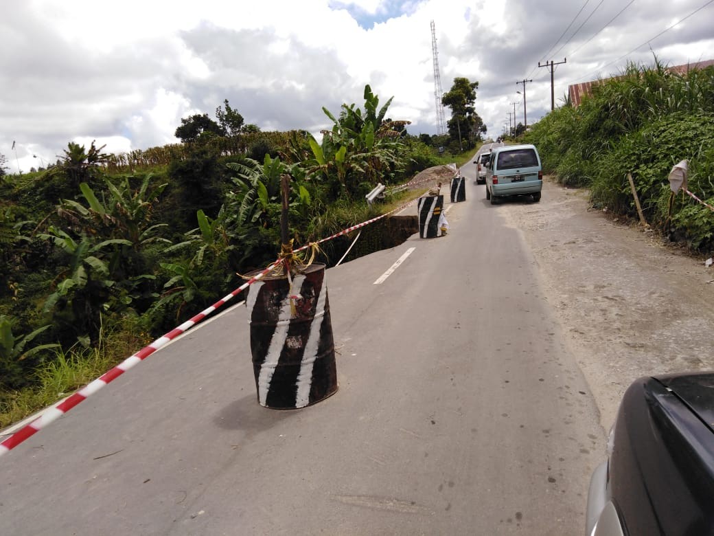RADARMEDAN.COM, Sidikalang - Jalan raya menuju Tele dari Sidikalang sangat rawan terhadap kecelakaan, sebelum desa Parbuluan ada lubang menganga akibat longsor sampai saat ini belum ada perbaikan dari pemerintah setempat. Salahsatu warga Parbuluan, Situmorang mengaku jalan raya yang rusak itu sudah lama terjadi. Untuk mengantisipasi masyarakat membuat tanda dari drum kosong dan tanda seadanya, sampai saat ini belum ada perbaikan dari pemerintah.