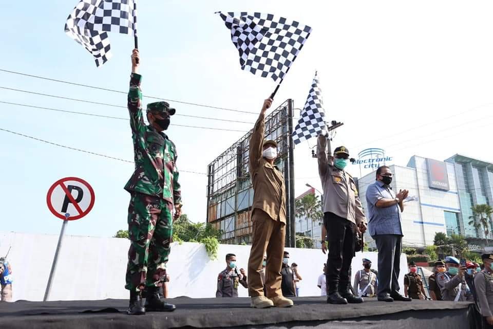Sebanyak 1.500 personil yang terdiri dari personil Sat Brimob Polda Sumut, Dit Samapta Polda Sumut, Kodam I/BB, Basarnas Sumut, BNPB Sumut, Damkar Kota Medan, Satpol PP, Dinas Perhubungan serta Dinas Kesehatan Kota Medan berpakaian APD lengkap dengan kendaraan dinas masing-masing bergerak dari depan Plaza Medan Fair menuju tiga rute lokasi penyemprotan.