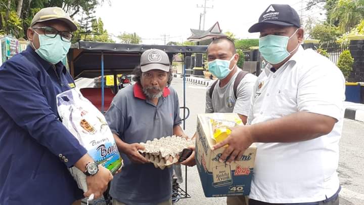 RADARMEDAN.COM, SIBOLGA - Karang Taruna Kota Sibolga bersama dengan POKJA Persatuan Wartawan Indonesia (PWI) SIBOLGA - TAPTENG, dan Ikatan Wartawan Online (IWO) SIBOLGA - TAPTENG menyalurkan bantuan kepada profesi yang terdampak ekonomi akibat pandemi Virus Corona (COVID-19) di Kota Sibolga dalam rangka menyukseskan program dirumah saja pada, Senin (06/04/2020) siang.