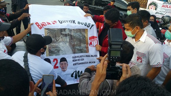 RADARMEDAN.COM - Kelompok masyarakat yang menamakan diri Barisan Relawan Jalan Perubahan - Bara JP mendeklarasikan diri mendukung Paslon nomor 2 Bobby Aulia menuju Medan Satu.