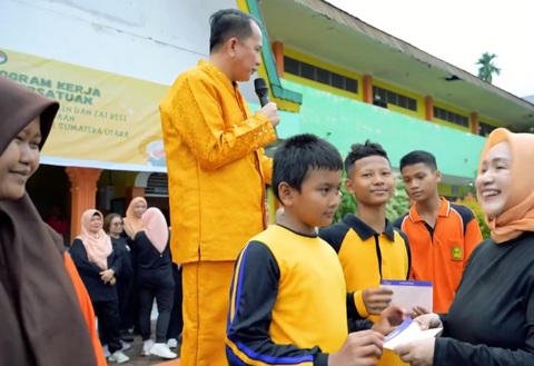 Pj Gubernur Sumut Agus Fatoni bersama Pj Ketua PKK Bagikan Vitamin dan Zat Besi kepada Siswa