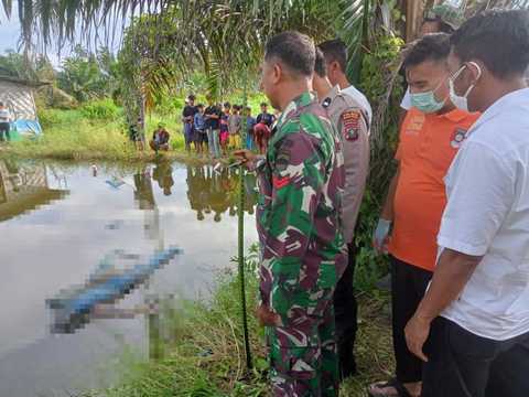 Mayat pertama kali ditemukan oleh Tonggo Pribadi (28) yang saat itu sedang menjaring ikan di kolam milik Syaiful (53) warga setempat.