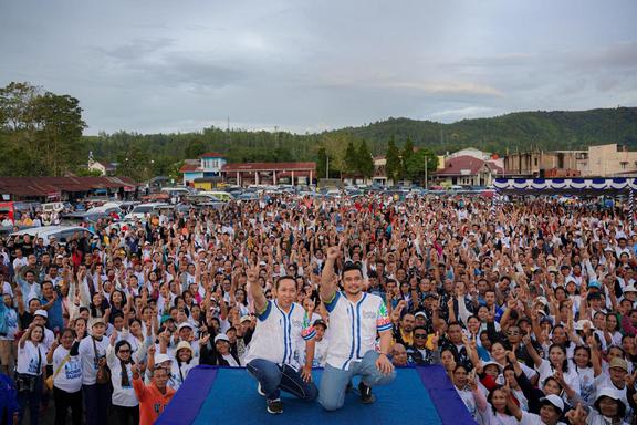 "Saya yakin di sini banyak pendukung, simpatisan, disampaikan mertua saya dalam berpolitik ini santai saja, nggak usah fitnah-fitnah sana sini, nggak usah jelek-jelekan sana sini," ungkap Bobby Nasution.