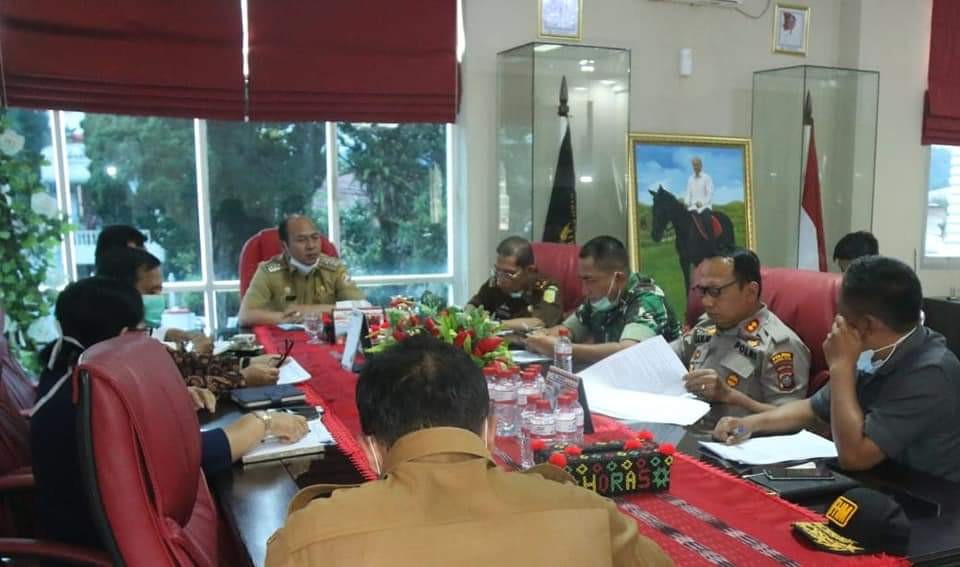 RADARMEDAN.COM, TAPUT - Bupati Taput bersama Forkopimda menetapkan Tanggap Darurat diperpanjangan hingga 14 hari kedepan. Hal ini diungkapkan Bupati Tapanuli Utara Drs. Nikson Nababan, M. Si saat memimpin Rapat bersama Forum Koordinasi Pimpinan Daerah (Forkopimda) yang dihadiri Dandim 0210/TU Rony Agus Widodo, Kapolres Taput Horas Marasi Silaen, Kejari Taput Tatang Darmi, Ketua DPRD Taput Poltak Pakpahan, Wakil Ketua DPRD Fatima Hutabarat, bertempat di ruang Kerja Bupati, Tarutung (Senin, 30/03/2020).