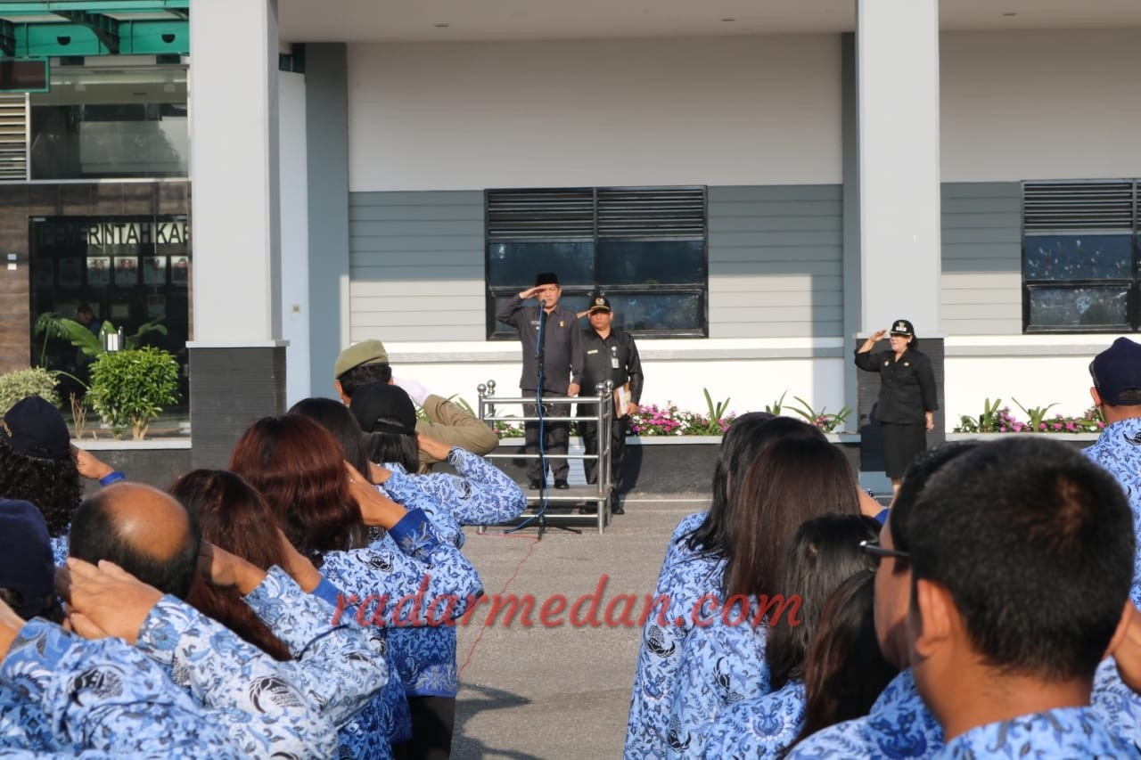 Saat Upacara digelar, sebagai Inspektur upacara Bupati karo Terkelin Brahmana diikuti oleh Wakil Bupati Karo Cory Seriwaty Sebayang dan seluruh jajaran ASN Pemda Karo, Jumat (17/1) pukul 08.00 wib dihalaman kantor Bupati Karo.